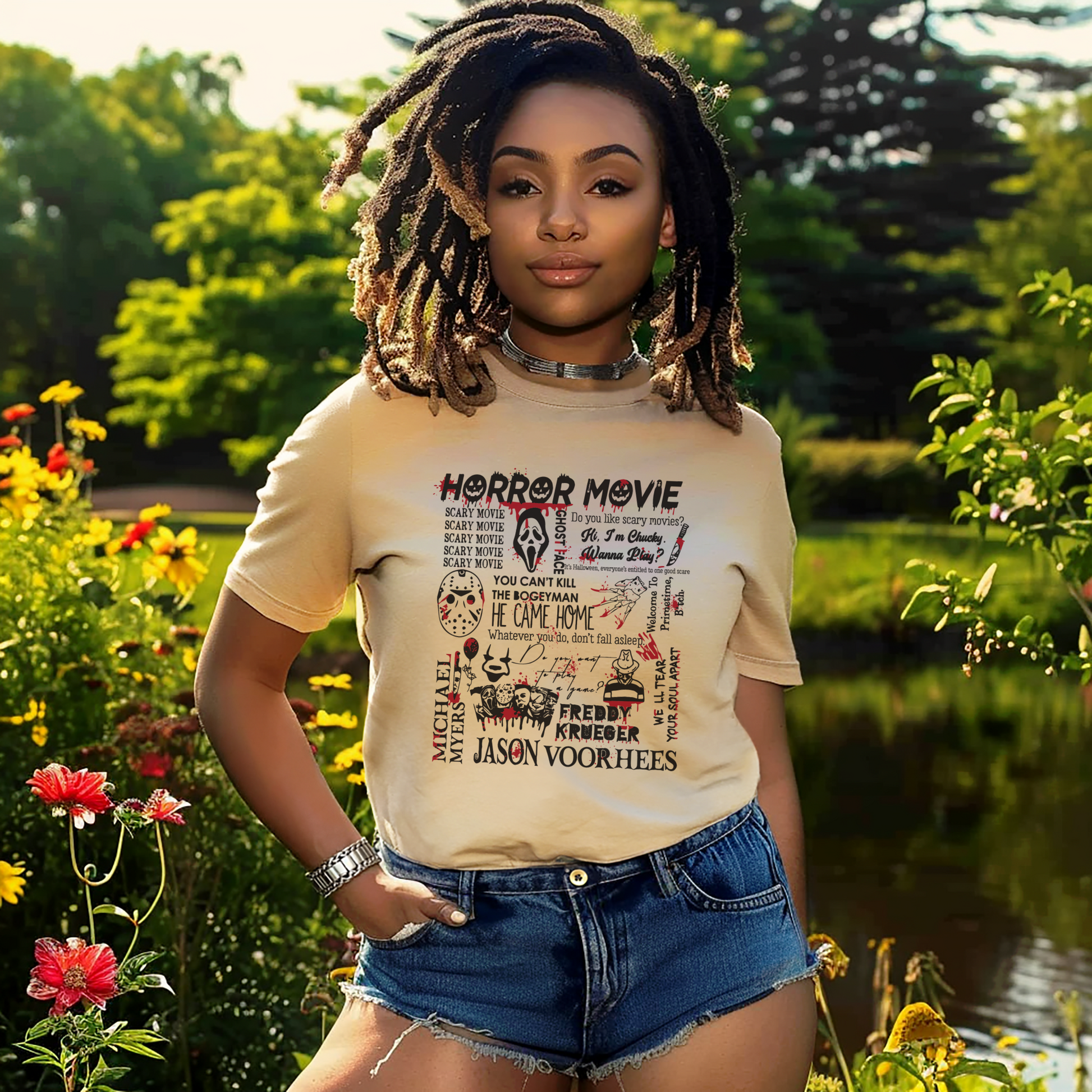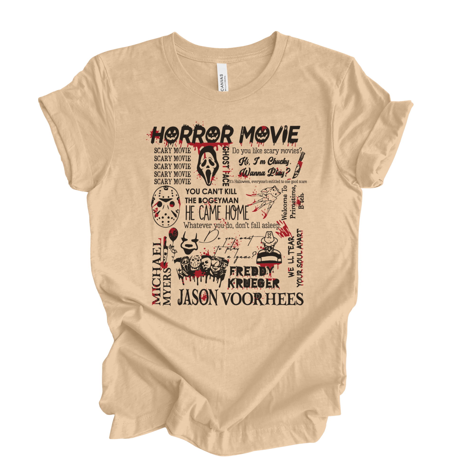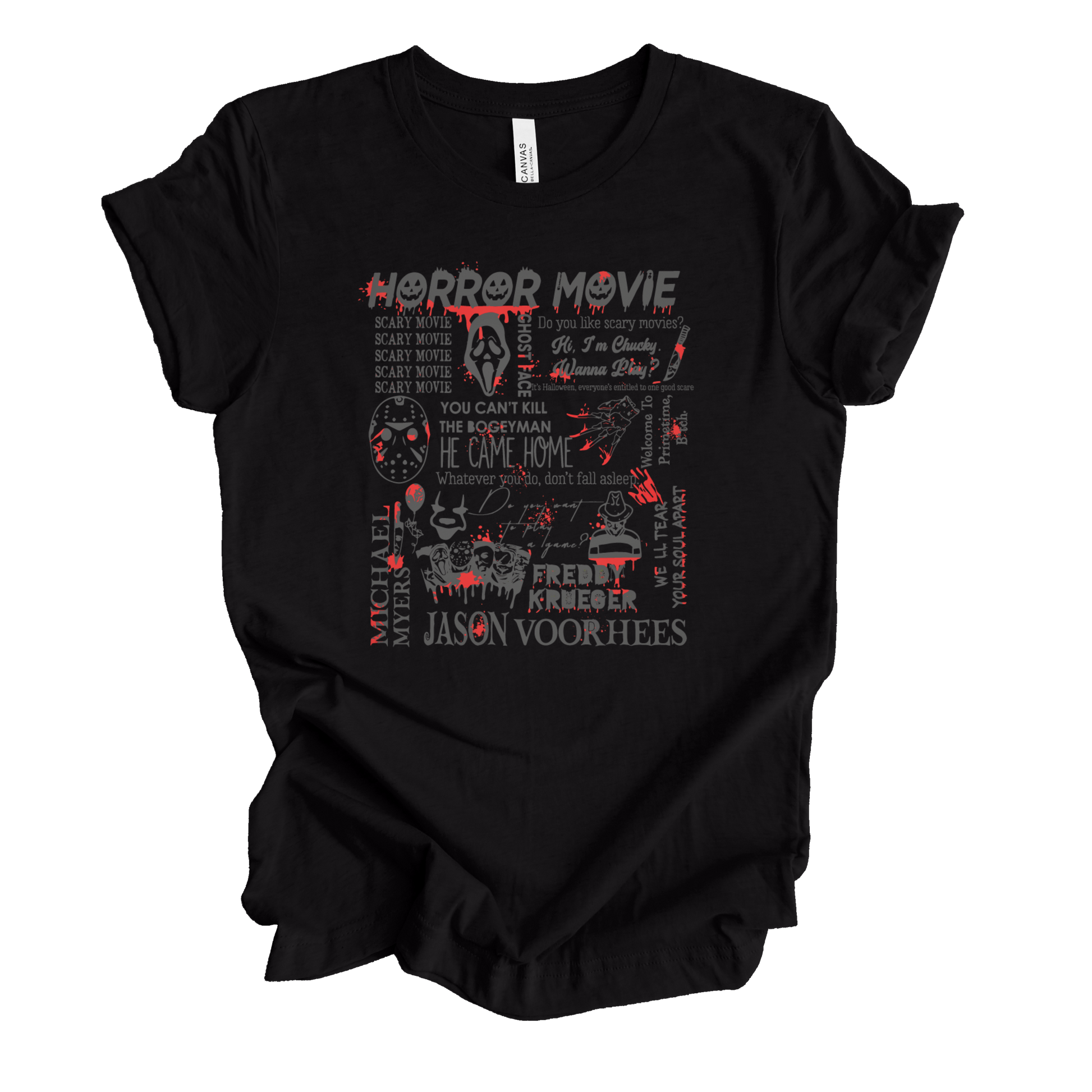 Relive the terror that defined a genre with our Classic Horror Scenes tee. This shirt captures iconic moment from vintage scream-fest-fog-drenched graveyards, flickering hallway shadows, and the chilling stare of masked menace. Each frame is a tribute to the golden age of horror. Unisex fit. Guaranteed to raise goosebumps.